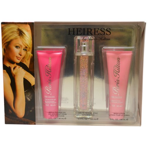 - Heiress by Paris Hilton for Women - 3 Pc Gift Set 3.4oz EDP Spray, 3oz Body Lotion, 3oz Bath and Shower Gel